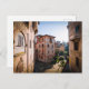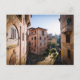 Peaceful, quiet side street in Rome, Italy. We sometimes think of Italy's capital as being bustling night and day, but this beautiful photo shows that Roma does have it's quiet side. This picture shows rustic, beautifully lit buildings and a few patches of trees, grass and shrubs.