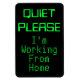 "QUIET PLEASE I'm Working From Home" green old-fashioned computer fonts on a black background. Magnetic sign. Perfect for those days when you need to work from home and want to let your family know that you're on a phone call or concentrating on a really important task! They can just check for the sign to know whether it's ok to bother you or not.