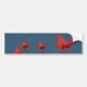 A family of red origami cranes floats across the still water of a pool while the raindrops splash around them.