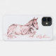 A black and white ballpoint pen illustration/drawing of a young horse laying on the ground just waking up from its nap. Customisable with your name. Artwork and design by Robin Cox.