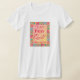 This tee shirt is fully customisable to personalise with your name, quilt guild or group. Wear to promote quilting or your guild or classes. The words are in customisable red text and 2 different fonts. The names (or other words) are centred in a colourful rectangle quilt block art border on a gradient yellow and coral textured background. The colours are red, pink, yellow, orange, turquoise blue, coral and green. This original art is by fabric designer Phyllis Dobbs and coordinates with other products in this store. The border includes favourite blocks such as the log cabin, star, square in a square, and others as well as an applique flower block.