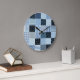 Blue patchwork tales: Stitched geometric marvels in textile print.