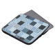 Quilt design. Seamless patchwork pattern from stitched squares with different geometric ornaments. Textile print in blue colours.