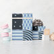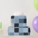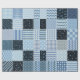 Quilt design. Seamless patchwork pattern from stitched squares with different geometric ornaments. Textile print in blue colours.