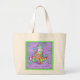 “I’m Cosy in my Quilt” will warm your heart on this tote bag. This white dog is wrapped in a multi-coloured patchwork quilt to keep warm. He is wearing a striped toboggan. The background is purple with a green border with turquoise stripes. Quilt stars and dots are sprinkled randomly on the background. This dog will win you over with his adorable expression.