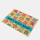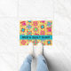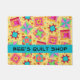 Welcome customers to your quilt store or business with this colourful door mat personalised with your business name. You can easily customise the name or other words for your door entrance. This door mat is great for promoting your quilt patchwork business and show quilting love and is also great for a quild or quilt class. The customisable business name is on a turquoise aqua blue strip and can easily be customised to another word such as a guild name. This original quilt art combines favourite quilt blocks such as log cabin, stars and pinwheels plus unique blocks to form a quilt design with vibrant and dynamic colours that pop on a black background. The block colours are green, yellow, pink, orange, red, and turquoise blue. Small yellow flowers are in the background between the blocks. Fully customisable Quilt art is from fabric and quilt designer Phyllis Dobbs and is easy to make it your own.