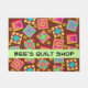 Welcome customers to your quilt store or business with this colourful door mat personalised with your business name. You can easily customise the name or other words for your door entrance. This door mat is great for promoting your quilt patchwork business and show quilting love and is also great for a quild or quilt class. The customisable business name is on a light green strip and can easily be customised to another word or name. This original quilt art combines favourite quilt blocks such as log cabin, stars and pinwheels plus unique blocks to form a quilt design with vibrant and dynamic colours on a warm brown background. The block colours are green, yellow, pink, orange, red, and turquoise blue. Small yellow flowers are in the background between the blocks. Fully customisable Quilt art is from fabric and quilt designer Phyllis Dobbs and is easy to make it your own.