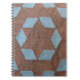 Quilt block in brown and blue "castle" pattern. The central "castle" is a brown star shape, surrounded by the "6 sided wall" with the "watch towers" extending out from the middle of the walls.