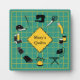 Here’s my special design for fellow quilters with my favourite tools and supplies for quilting, patchwork, needlework and embroidery: sewing needles, spools of thread, pin cushion with stick pins, bobbins, thimble, tape measure, scissors, bolt of cloth, rotary cutter, sewing machine and label on a green and gold self healing cutting mat. A thoughtful gift for yourself or that special creative person in your life.