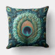 Quilted Blue Peacock Feathers Design Cushion