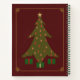 This elegant design features a quilted Christmas tree with jewel-toned ornaments adorning it and presents underneath, all surrounded by a delicate gold filigree border with jewels at the corners.