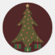 This elegant design features a quilted Christmas tree with jewel-toned ornaments adorning it and presents underneath, all surrounded by a delicate gold filigree border with jewels at the corners.