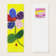 Colourful and fun original artwork printed on front of bookmark. Quilted Daisy looks like fabric that has been appliqued with a button and lace. Small ladybugs "crawl" up around the flower.