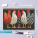 A cheerful and textured farmyard inspired design featuring five colorful hens and roosters standing side by side against a black quilted background. Each bird has its own unique plumage pattern giving the image a delightful mix of contrast and personality. The raised, stitched like texture and bright red combs add a tactile, handmade charm that feels both folksy and modern farmhouse. This playful image brings warmth and whimsy to any craft project, perfect for those who love rustic décor with a stylish twist. Artwork similar to a textile applique or fabric relief illustration with a folk art finish……COLOR COMBINATIONS: Black, white, red, orange, ivory, yellow, gray…..PERFECT FOR: Farmhouse themed decoupage, kitchen décor crafts, upcycled furniture projects, rustic mixed media art, country style gift wrapping.......…... 🖤 NOTE 1. This design is available in two options: Left and Right. You can find them in the Collection shown below. If they don’t appear there, try searching for their unique identifiers: EN2L for the Left design and EN2R for the Right version….🖤 NOTE 2. The 18 lb tissue is a great choice if you like a little extra strength—it's easier to handle, resists tearing and allows for gentle repositioning. It’s also more opaque, making it perfect for darker surfaces. The 10 lb tissue is wonderfully lightweight and flexible giving you that smooth, blended finish. It’s ideal for layering on furniture or smaller projects so treat it gently and it will reward you with stunning results!.….🖤 NOTE 3. All items with this particular design share my unique identifying “Letter/s Number/s” label in the title for easy searching. …..🖤