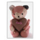 teddy bear made from old quilts holding a big calico heart with the name 'Emily'