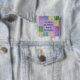 Button badge for quilters and sewing artists has shabby chic patchwork quilt graphics and the text motto "I'd rather be stitchin' than in the kitchen." Editable text you change if desired. Created with purchased licensed artwork (c) Folkvanger and Baby Cakes Scraps
