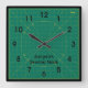 The quilt maker or seamstress in your life will love this personalised clock for the sewing room. It's a classic green cutting mat design printed with strong black easy to read face numerals. See many other unique sewing themed clocks in this collection at Clock O Rama on Zazzle.