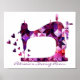 This fabulous sewing room wall poster contains a patchwork quilt sewing machine design in beautiful purple shades. Perfect for quilting room wall art decor - or gift to a quilter.