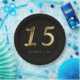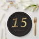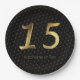 Quinceanera 15th Birthday 15th Anniversary Gold Number 15 Gold Look Typography on Black Background with Number 15 repeat pattern , 15th Wedding Anniversary, Crystal Wedding Anniversary Elegant Black and Gold 15th Anniversary Paper Plates, you can add name or text