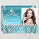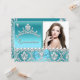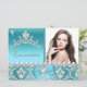 Quinceanera 15th Teal Blue Aqua Add Photo Birthday Party Butterfly Silver White Pearl Lace Damask Bow Elegant Classy All Occasion Just change age. Party birthday invites Template