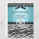 Quinceanera 15th Blue Teal Black Zebra Tiara Invitation