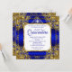 Quinceanera 15th Royal Blue Gold Pearl Tiara Invitation