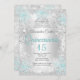 Quinceanera 15th Silver Teal blue Snowflake Photo Invitation