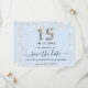 A girly and trendy Save the Date for a Quinceañera, 15th birthday party. Ababy blue background decorated with faux glitter dust. Personalise and add a date and name/age. The text: Save the Date is written with a large trendy hand lettered style script. Number 15 with a balloon style font.