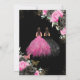 Quinceañera Black Fuchsia Floral Princess Twins Invitation