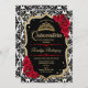 Features damask pattern, script font, red roses, tiara and confetti. Classy design with faux glitter gold. Perfect for an elegant glam celebration.