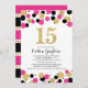 Quinceanera Black Hot Pink Gold Glitter Confetti Invitation