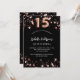 A classic black background, decorated with rose gold stars. Personalise and add a name and party details. Number 15 is written with a balloon style script.