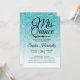 A glamourous, modern turquoise blue glitter ombre design Quinceañera 15 birthday invitation features the text "Mis Quince" in black chic handwritten script calligraphy. Perfect 15th birthday party invitation for a glamourous Quinceañera, perfect for her, the fashionista who loves modern pattern, sparkle, luxury and glam. Exclusively designed for you by Happy Dolphin Studio.