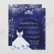 A modern, stylish and glamourous invitation for a Quinceañera, 15th birthday party. A midnight blue background with faux silver glitter dust, a tiara and a dress. The blue colour is uneven. The name is written with a modern hand lettered style script. Personalise and add your party details.
