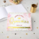 Let your favourite Quinceañera be proud, rejoice and celebrate her milestone event with this stunning keepsake scrapbook real gold foil guestbook. On the front, a sparkly real gold foil crown, calligraphy script, and tiny confetti dots, along with modern white sans serif typography, overlay a soft, light blush pink watercolor background. The customisable spine is real gold foil. And on the back, additional real gold foil confetti and crown overlay blush pink watercolor. Personalise the custom text with her name and date of event. Choose from 3 real foil colours (gold, silver and rose gold), 3 sizes (9”x6”, 10.5”x8.25” and 12”sq) and 3 papers (blank white, lined white and black). Guaranteed to add stylish memories of her occasion. Matching and coordinating invites, address labels, stickers, thank you cards, and other Quinceañera goodies are also available in this trendy and special collection.