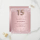 A modern, stylish and glamourous invitation for a girl's Quinceañera, 15th birthday party. A dusty rose, pink faux metallic looking background with an elegant faux glitter drip, paint drip look. The name is written with a modern dark rose gold coloured hand lettered style script. Personalise and add your party details. Number 15 is written with a balloon style font, script.