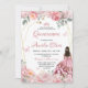 Quinceañera Blush Pink Rose Floral Butterfly Tiara Invitation
