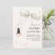 This sophisticated design features a large ivory bow adorned with delicate pearl details, paired with a graceful gown illustration.