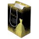 This chic Gift Bag features a beautiful yellow themed elegant watercolor dress gown on a black background with faux glitter at the top and bottom on both sides with a special message on each side. The text can be personalised to suit your own requirements.