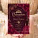 Quinceanera Burgundy Gold Dress Floral Invitation