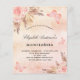 A rose gold, blush pink rustic faux metallic looking background. Decorated with rose gold and pink florals, roses, pampas grass and butterflies. Personalise and add a name and party details.