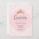 A lovely pink quinceañera invitation with a white, lace-like pattern overlay and a gold crown. (<a href='https://www.freepik.com/free-vector/quinceanera-party-invitation_3276553.htm'>Designed by Freepik</a>). <br/><br/>The card is easy to customise with your wording, font, font colour, paper shape options and choice of six paper types.<br/><br/>Not exactly what you're looking for? All our products can be custom designed to meet your needs at no extra charge.<br/><br/>Simply contact us at heartfelthelper@gmail.com.<br/><br/>Coordinating products available: Just ask us!"