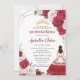 Quinceañera Charro Red White Roses Floral Gold Invitation