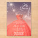 CLEAR ACRYLIC INVITATIONS! A deep coral dress on a starry night sky background featuring the Eiffel Tower, these Quinceañera birthday party invitations are perfect for any princess' 15th birthday. MATCHING items in our collection.