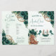 Celebrate tradition with this budget-friendly Charro Quinceañera program, featuring vibrant emerald green flowers, gold accents, horse silhouettes, and cowboy boots adorned with florals. A subtle horseshoe adds rustic charm to this foldable bi-fold paper sheet, which includes your padrinos list, order of events, corte de honour - damas and chambelanes—all in one elegant design.