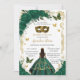 Quinceañera Emerald Green Floral Gold Masquerade Invitation