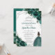 Quinceañera Emerald Green Floral Silver Princess Invitation