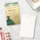 Quinceanera emerald green gold dress invitation ID badge