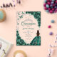 Quinceanera Emerald Green Silver Floral Acrylic Invitations
