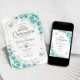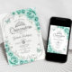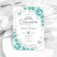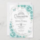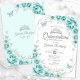 Turquoise, silver and white Quinceanera celebration invitation. Features, script font, butterflies, watercolor green roses and tiara. Perfect for an elegant princess style glam celebration. Personalise with your own details. Printed Zazzle invitations or instant download digital printable template.